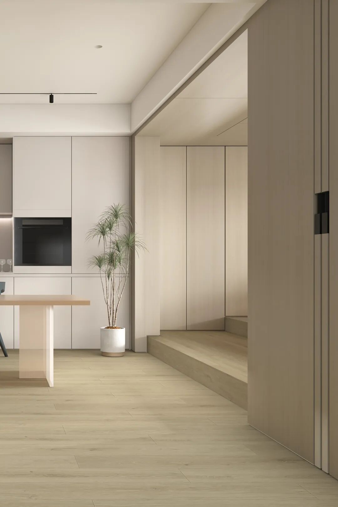 簡(jiǎn)約溫暖的空間總能給予人歸屬感,“90131-2韋克舍橡木”的紋理清晰,山紋和結(jié)疤的層次感,游于地面之上,似蜉蝣于天地間,在大面積鋪裝中的重復(fù)率更低,視覺效果更加通透別致。同色系的空間更令人心曠神怡。